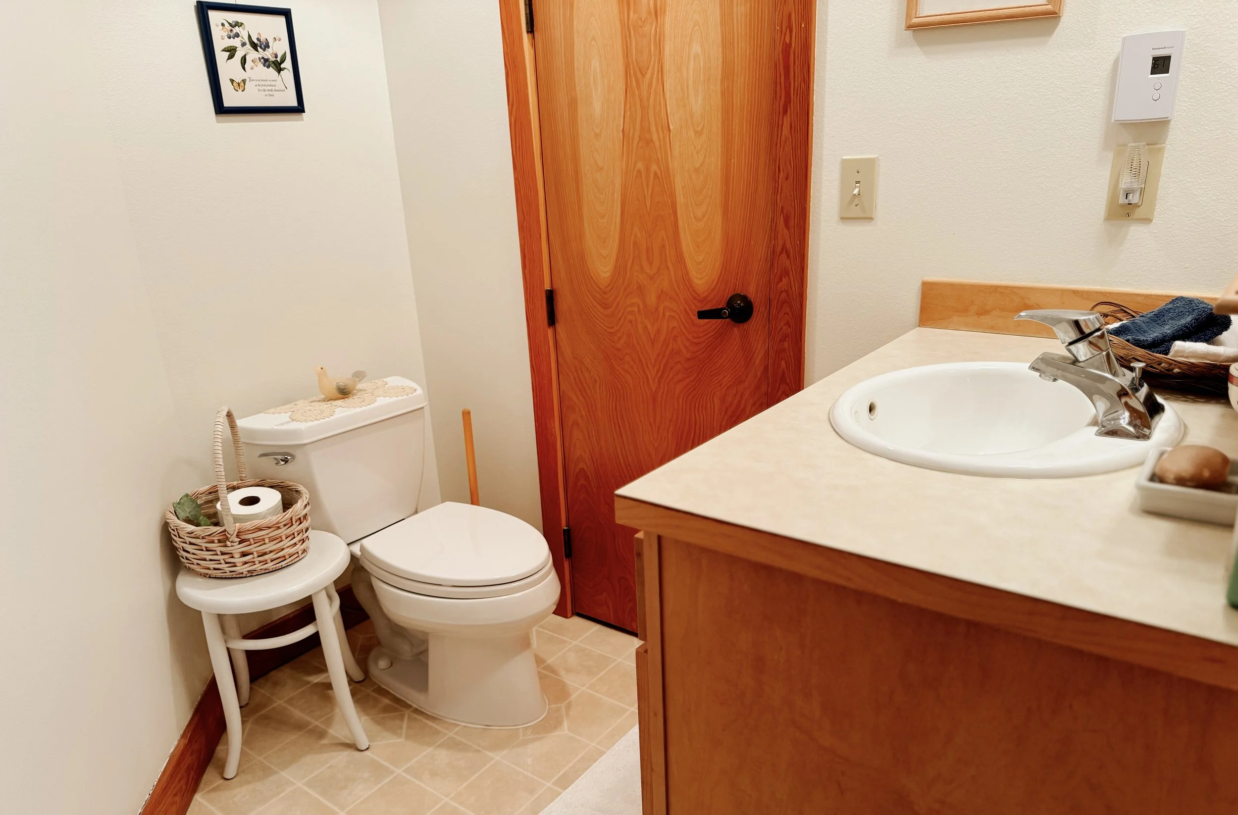 Three bedrooms on the lower level. Queen-sized bed in two and double bed in one.
